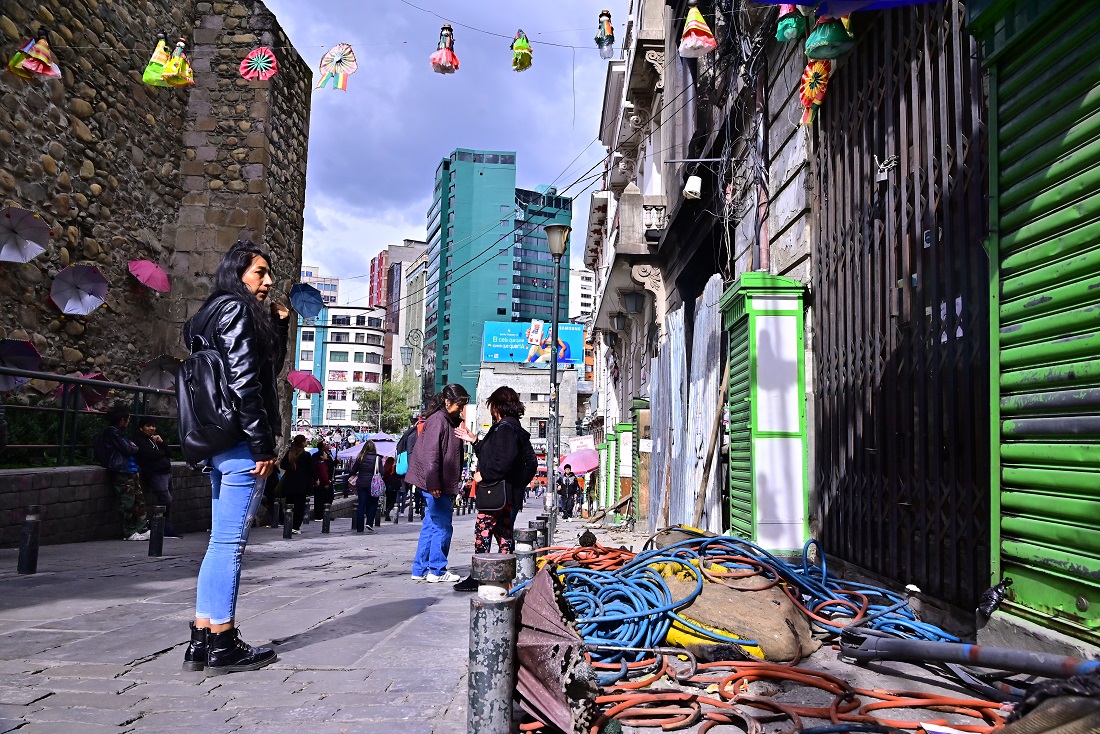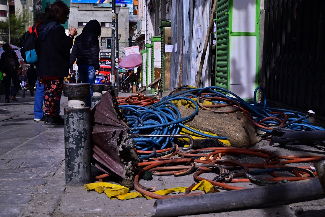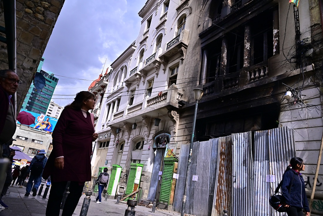 El periodista Franz Chávez se fue este martes hasta la calle Sagárnaga, ubicada en el corazón del casco viejo de La Paz, donde la madrugada del lunes el fuego consumió por completo un inmueble. Al pasar por allí se ve las terribles secuelas del incendio, como del esfuerzo de la Unidad de Bomberos por frenar el siniestro. En medio de ese panorama inquietante, la gente busca retomar su cotidianidad o al pasar por el lugar se detiene. FOTOS GENTILEZA FRANZ CHAVEZ