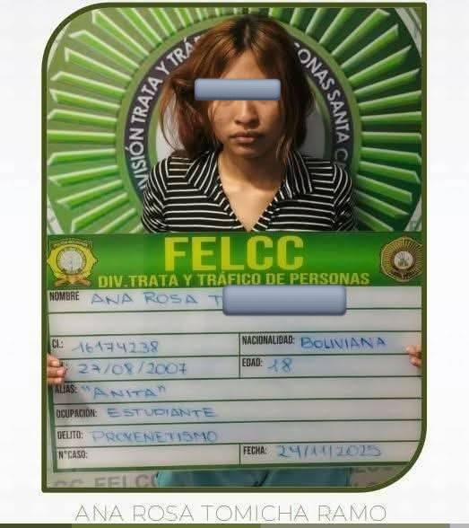 26 de noviembre (Urgente.bo). – El director Departamental de la Fuerza Especial de Lucha Contra el Crimen (FELCC) Santa Cruz, Gustavo Astilla, informó que una adolescente de 18 años fue aprehendida por la Policía al momento de ser vinculada como la cabecilla de hechos de proxenetismo.