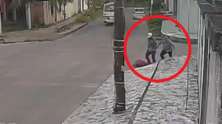 Elo hombre de la tercera edad bajó de un micro y caminó hasta llegar a una esquina, cuando fue atacado por los dos sujetos que le dispararon con un arma de fuego y lo golpearon, según captaron las cámaras de seguridad.