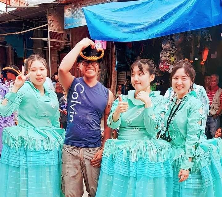 Las tres jóvenes asiáticas son voluntarias de la Agencia de Cooperación Internacional de Corea (Koica) que tiene un convenio con el Gobierno Municipal de Caranavi, razón por la cual ellas estuvieron de visita en ese municipio, realizando estudios a emprendimientos turísticos. Así, aceptaron la invitación de celebrar el carnaval de acuerdo a la tradición andina.