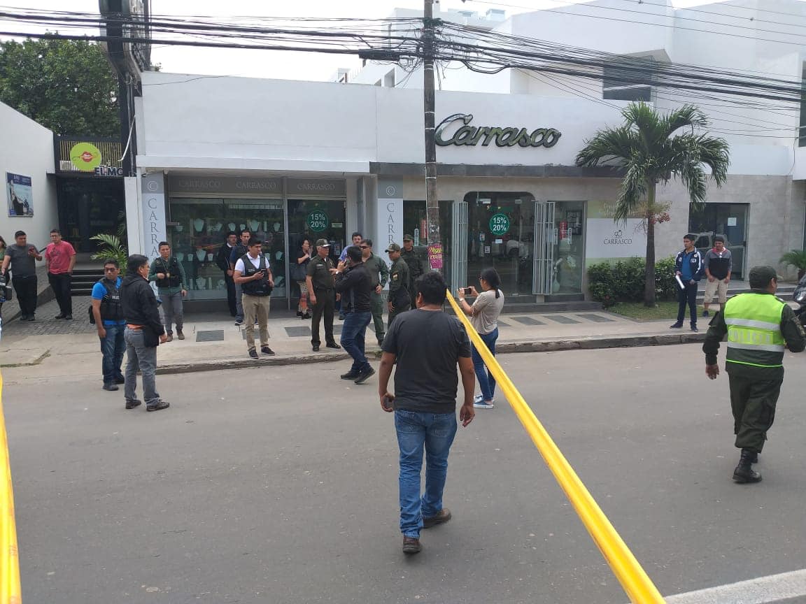 21 de septiembre (Urgentebo).- Un heridos es el saldo de un atraco que se registró la mañana de este sábado en la joyería Carraco, en la zona Equipetrol Santa Cruz., Cuando un grupo de delincuentes a bordo de un vehículo Toyota Tipo Probox, intentó ingresar a dicha joyería.