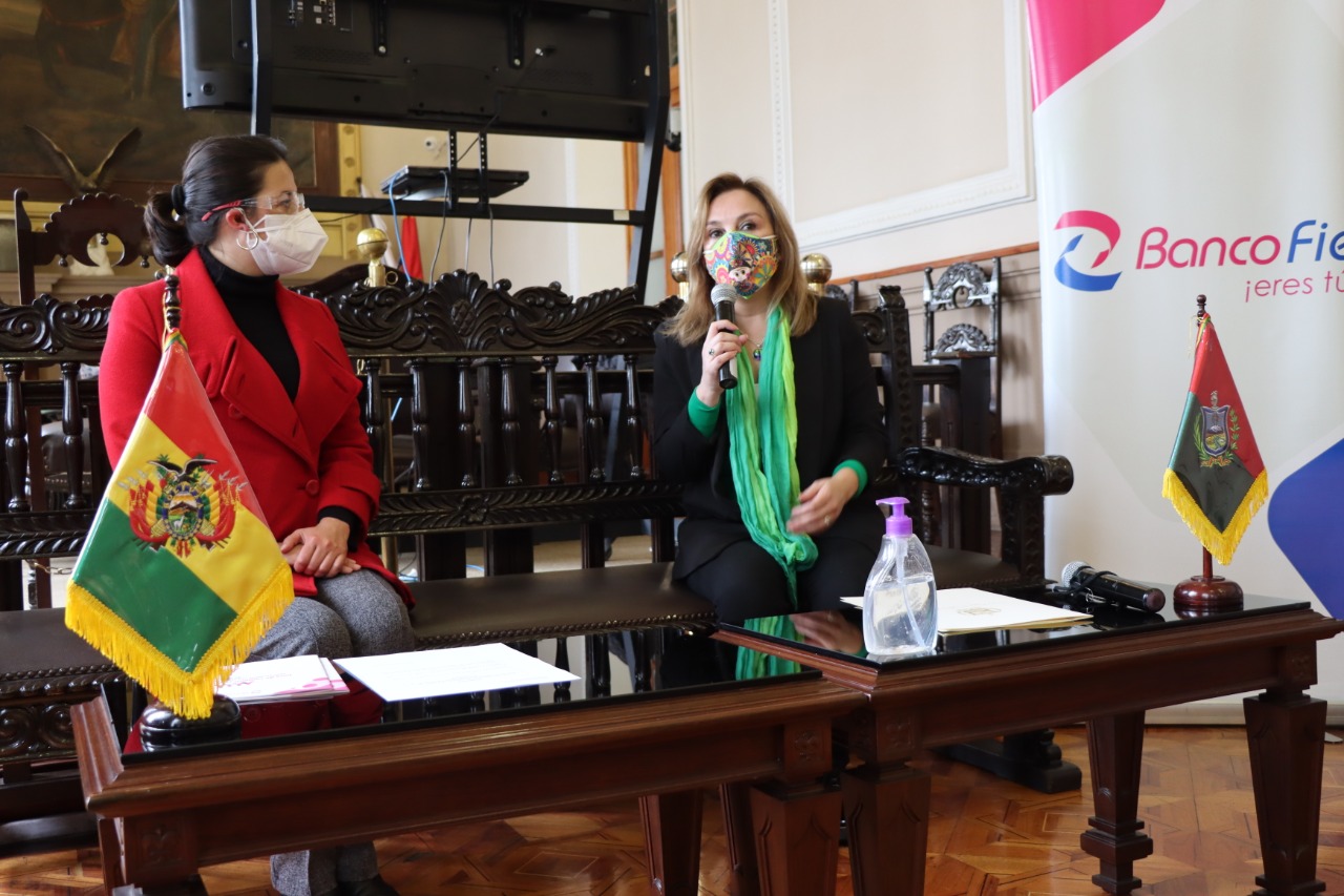 5 de marzo (Urgente.bo).- Banco FIE recibió esta mañana el Reconocimiento Municipal a la lucha por la Equidad de Género “Simona Manzaneda” del Gobierno Autónomo Municipal de La Paz por su compromiso constante integrando el enfoque de género como pilar esencial de su identidad corporativa a través de su modelo de gestión empresarial “Marca Magenta”, “lo cual representa un ejemplo de esfuerzo en la lucha por la equidad de género para el Municipio de La Paz”, destaca la Ordenanza Municipal G.A.M.L.P. No. 067/2020, que otorga este galardón.
