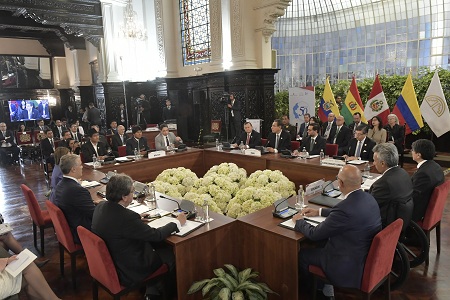 Los presidentes Bolivia, Evo Morales; de Colombia, Iván Duque Márquez; Ecuador, Lenin Moreno Garcés; y Perú, Martín Vizcarra Cornejo suscribieron un documento para impulsar el comercio, la interconexión energética y la tecnología.