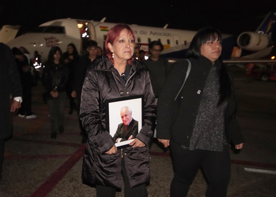 Luego, los restos de Santalla fueron trasladados por la aerolínea estatal BoA de la ciudad de Sucre al aeropuerto internacional El Alto. Y desde allí, la caravana de vehículos fue liderada por el icónico camión Volvo, con el que Santalla protagonizó la película Mi Socio en la década de los 80.