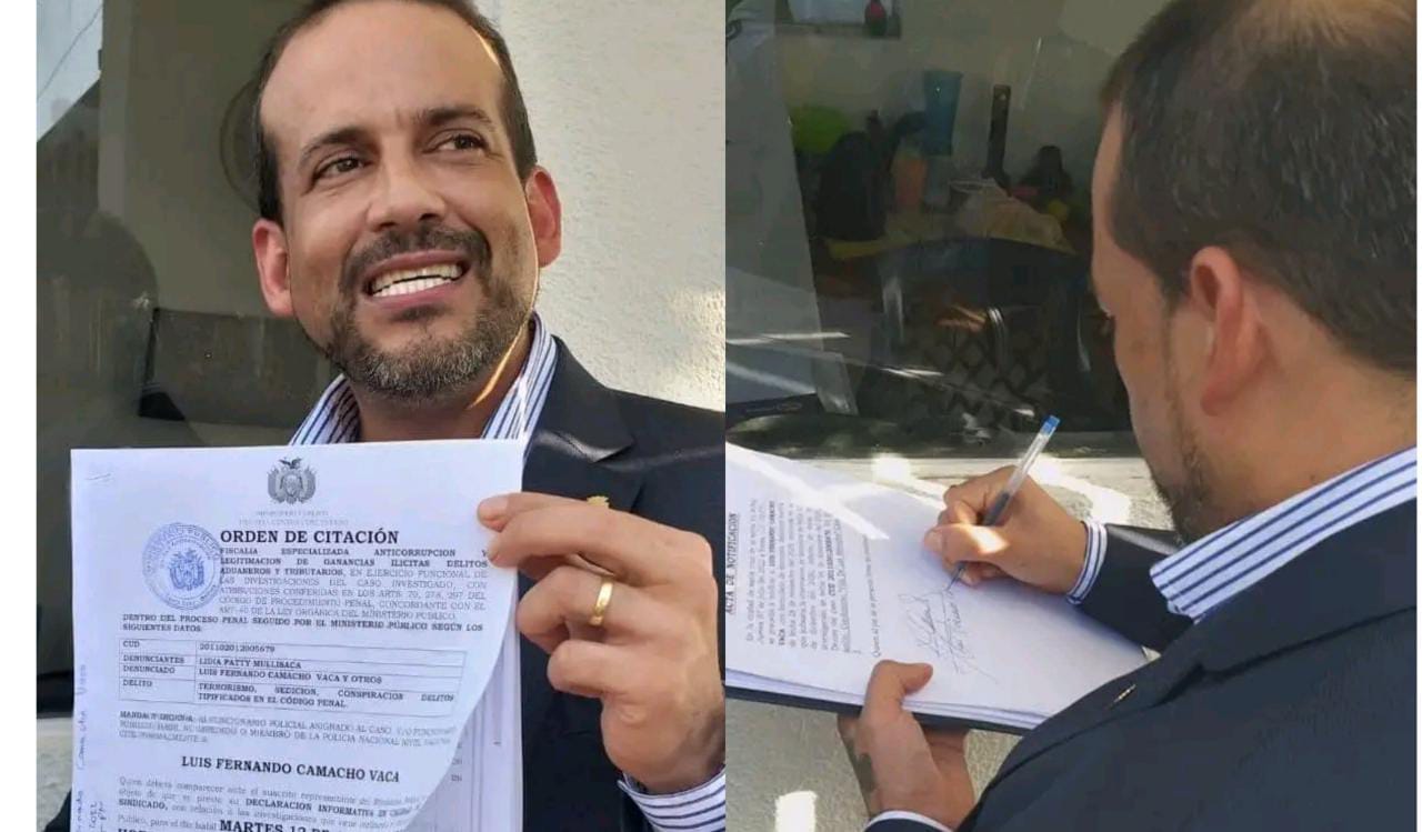 7 de julio (Urgente.bo).- El gobernador de Santa Cruz, Luis Fernando Camacho, fue notificado este jueves por la Fiscalía para que declare en calidad de sindicado por el caso Golpe I.