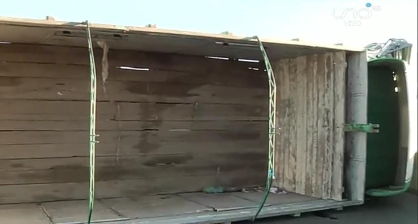 “Me ha trancado un Nissan Condor, mi freno falló”, relató el chofer del camión, quien salió ileso.