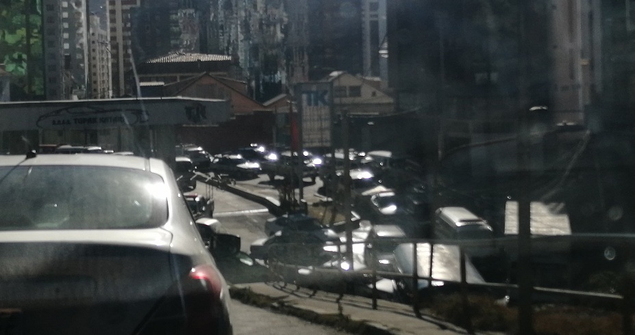 2 de agosto (Urgentebo).- Los desfiles en la ciudad de La Paz generan un gran caos vehicular. En la avenida Kantutani hay una larga fila de vehículos y tránsito de la Policía no agiliza el tráfico.