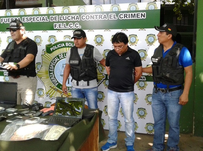 La Paz, 07 de agosto (Urgentebo.com).- La Fuerza Especial de Lucha Contra el Crimen detuvo la noche del domingo en Santa Cruz al administrador de diferentes cuentas de noticias en Faceboook, bajo el nombre de “Cachinoticias”. Henry Gutiérrez fue detenido bajo la acusación de extorsión y esta mañana fue presentada por la Policía.