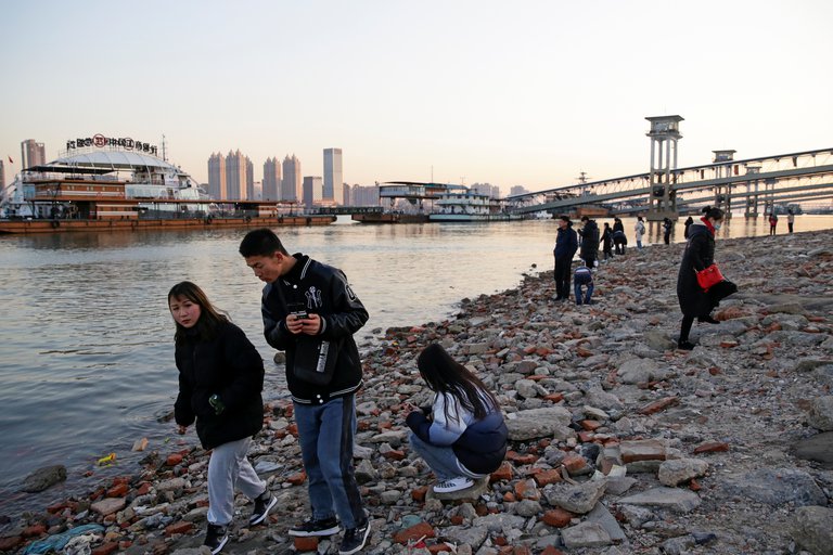 Personas caminan por la vera del río en Wuhan, China. Foto: REUTERS/Tingshu Wang