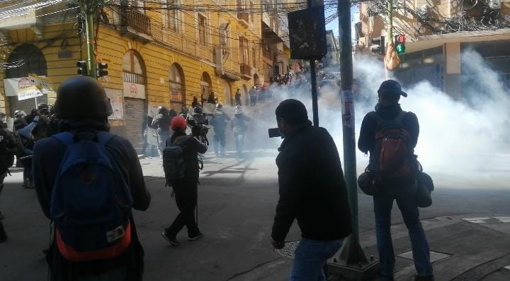 Según reportes, los movilizados trataron de ingresar a la plaza Murillo y acercarse al grupo afín a Alanes, que también realiza una marcha.