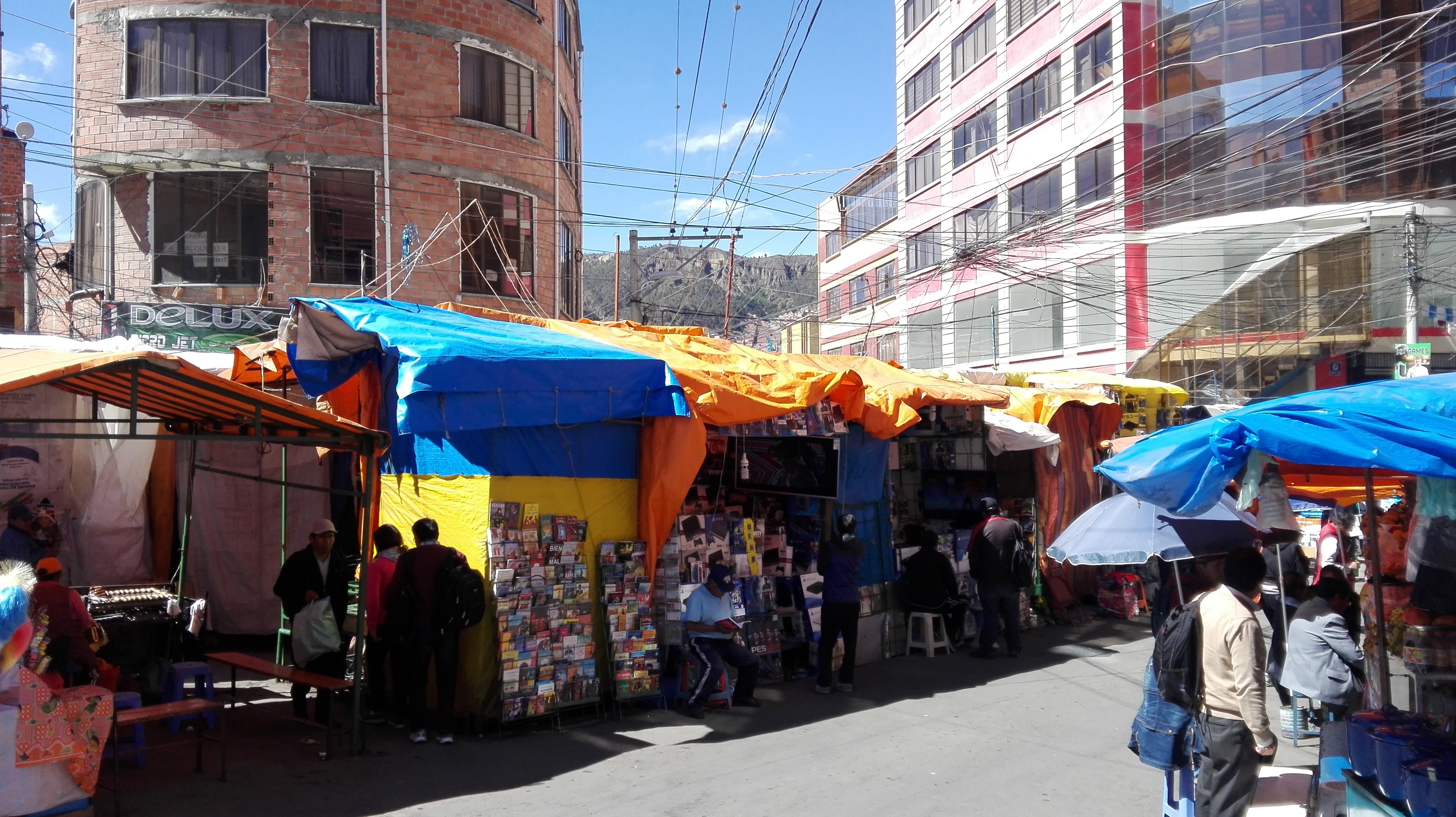 La Paz, 2 de Octubre de 2017.- En la calle comercial Uyustus, durante la mañana de hoy, se registró un conflicto entre las comerciantes centralistas conrtra comerciantes del sector y dueños de inmuebles, debido a que según coordinación ellos solo pueden vender los días miércoles, jueves, viernes y sábado, y no así toda la semana como lo estuvieron haciendo desde hace un mes. A los comerciantes del sector los perjudicó en la venta, y a los propietarios al momento de querer sacar sus vehículos, informó doña Ana Astorga, comerciante del sector azul.