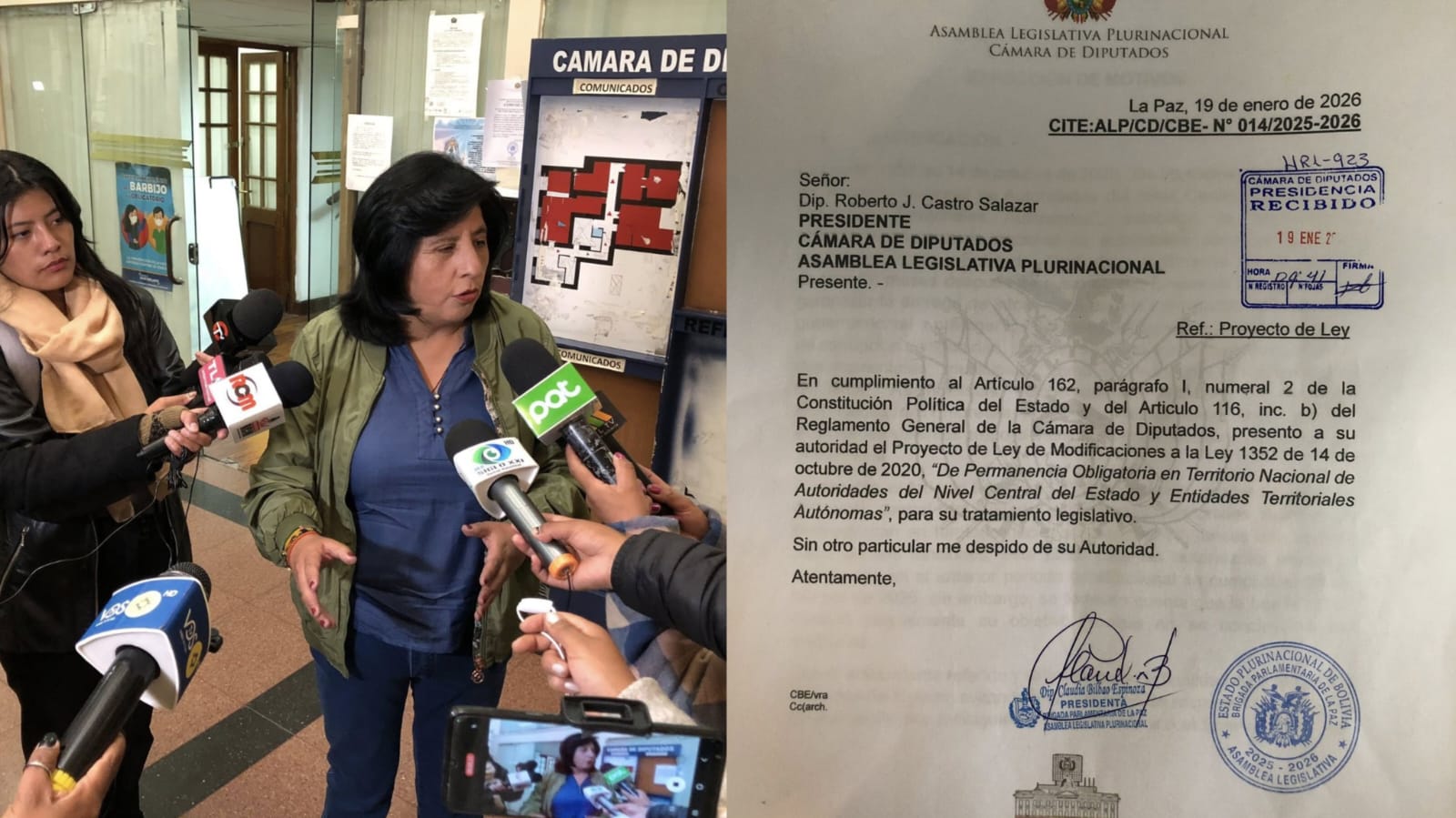El proyecto de ley fue presentado ante el presidente de la Cámara de Diputados, Roberto Castro, el pasado 19 de enero. La normativa plantea modificar la Ley 1352, denominada “Permanencia Obligatoria en Territorio Nacional de Autoridades de Nivel Central del Estado y Entidades Territoriales Autónomas”, que establece que las exautoridades no pueden salir del país durante tres meses después de haber concluido sus funciones.
