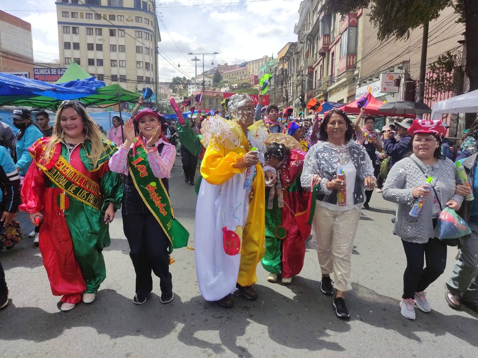 “Aquí estamos inspeccionando para que no se use globos, sí mucha espuma. A lo largo del trayecto la gente está respetando el no uso del agua, estamos controlando también la calidad de la espuma porque hay muchas espumas que pueden lastimar los ojos. Pero es una fiesta tranquila y que los paceños la pasen bien”, dijo Arias.