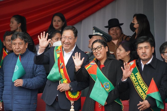 “Es un placer y honor participar en el desfile cívico militar en homenaje al 38 aniversario de la valerosa ciudad de El Alto”, escribió Arce en sus redes sociales el jefe de estado.