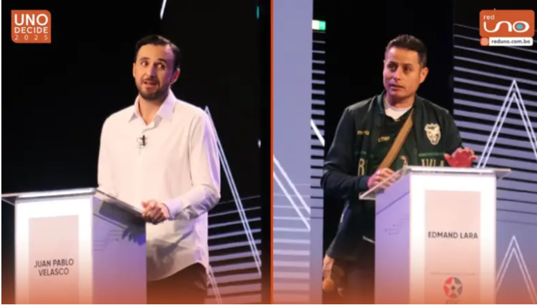 La noche de este domingo, el salón Sirionó de la Fexpocruz fue el escenario del debate más intenso de los últimos tiempos. Edmand Lara, del PDC, y Juan Pablo Velasco, de la alianza Libre, se vieron las caras finalmente para sostener un encuentro, en el que el compañero de fórmula de Rodrigo Paz lo cercó con los tuits racistas de hace 15 años y una denuncia sobre su papel en el Banco Fassil, mientras que el “Vice”  de Jorge Quiroga optó por llamarlo Evo y le propuso construir en lugar de destruir.