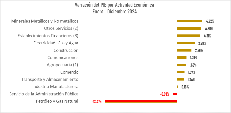 El sector minero ha contribuido, durante los últimos cinco años, con entre el 4,17% y el 5,40% del Producto Interno Bruto (PIB) nacional, confirmando su carácter de pilar estructural del crecimiento económico del país. De acuerdo con el PIB por actividad económica —indicador que refleja el aporte real de cada sector al dinamismo productivo—, la extracción de minerales metálicos y no metálicos registró en la gestión 2024 un incremento de 4,72%, el mayor crecimiento entre todas las actividades económicas.