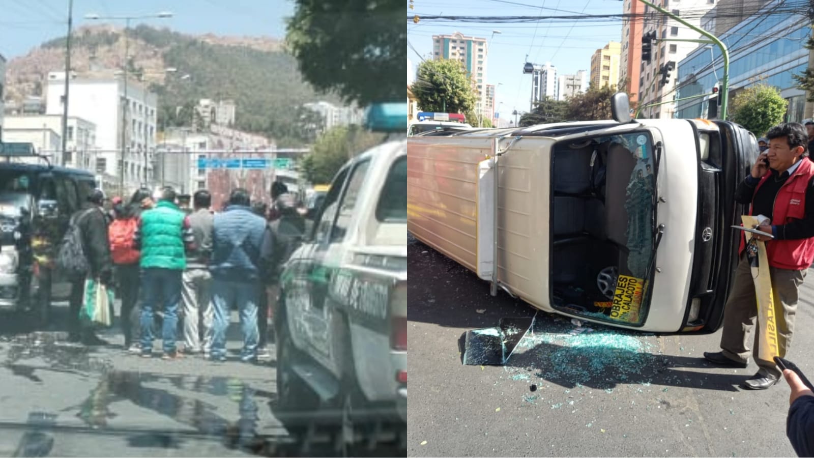 "Un vehículo de servicio público y un vehículo tipo ambulancia de la Caja Nacional de Salud, quien habría obviado el semáforo y colisionó con el minibús causando un vuelco lateral izquierdo", manifestó Sosa.