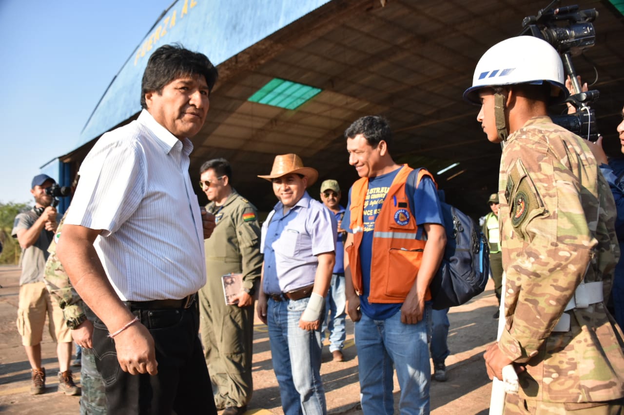 Bomberos pidió al presidente Evo Morales operar también en Charagua. El Presidente dijo también que hay lugares inaccesibles y donde el fuego es incontrolable. “Ahí solo con aviones y helicópteros”, se puede llegar.