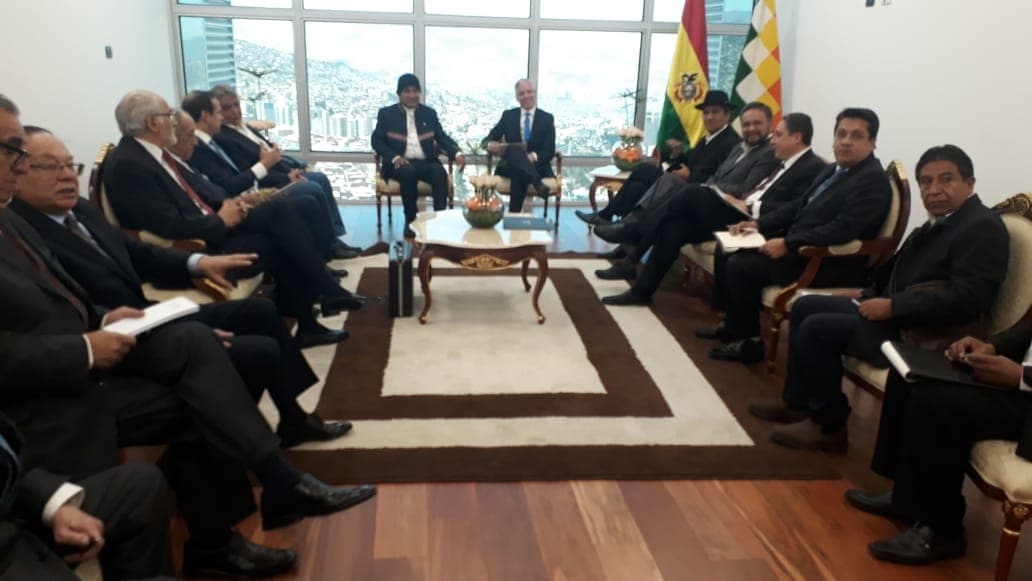 La Paz, 17 de septiembre (Urgentebo).- El primero en llegar a la invitación que hizo el presidente Evo Morales fue el exminstro de Relaciones Exteriores, Gustavo Fernández, que ingresó a la Casa del Pueblo sin realizar declaración alguna. Morales invitó para las 11.00 de hoy a los expresidentes y exministros de Relaciones Exteriores para hablar del proceso PostHaya.