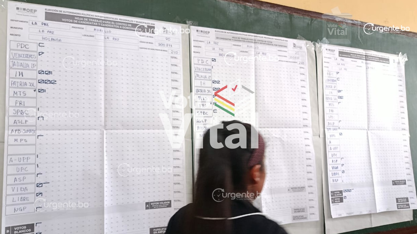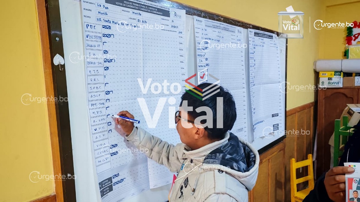 22 de marzo (Urgente.bo).- Las mesas electorales ya empezaron a realizar sus cómputos. En la Unidad Educativa San María (zona 16 de Julio), en la ciudad de El Alto, en algunas mesas los resultados preliminares dieron como ganador al voto nulo, así como a las agrupaciones Venceremos y Patria Sol.