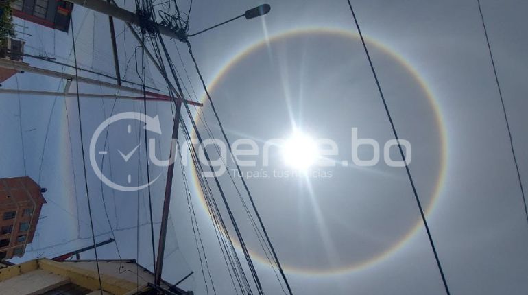 Se formó un círculo luminoso perfecto alrededor del sol, en el cielo paceño que estaba despejado luego de la intensa lluvia que se registró el sábado durante el acto de investidura presidencial.