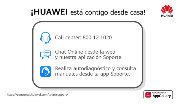 • El usuario puede resolver cualquier consulta o duda sobre los productos HUAWEI llamando al centro de contacto: 800121020.
