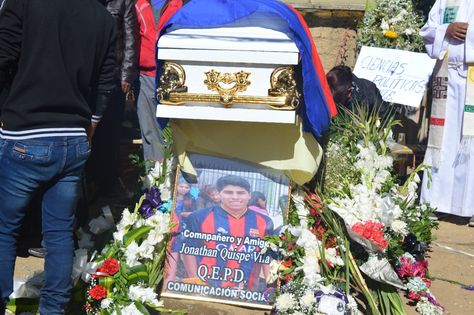 La Paz, 30 de mayo (Urgentebo).- Cinco días pasaron ya de la muerte de Jonathan Quispe Vila, el estudiante de Comunicación de la Universidad Pública de El Alto y Paola Barriga abogada de la familia develó este miércoles que el universitario falleció en el regazo de sus compañeras.