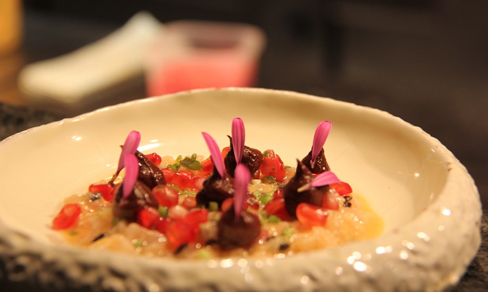 “Esta combinación del dulce del plátano con la acidez de las pasifloras y la frescura del lagarto y el cilantro es muy sabrosa”, manifiesta Taha.
