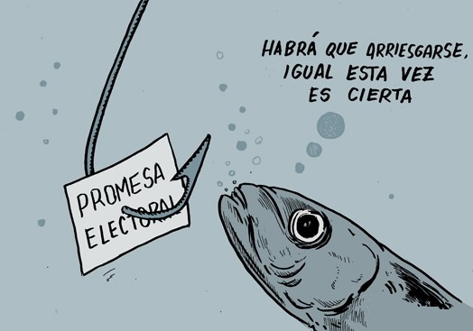 La promesa se repite como sílabas, palabras o frases sagradas gastadas y de paso rearticuladas: Una de la más célebre fue “Bolivia se nos muere”, que permitió dar paso al decreto 21060 y la relocalización de miles de mineros, luego vino el optimismo: “Bolivia, país de ganadores”, “Gobierno de ciudadanos” y el que ahora escuchamos hasta el hartazgo: Bolivia, Bolivia, Bolivia, Bolivia, Bolivia, Bolivia…La traducción real: usarlos mientras dure su efecto.