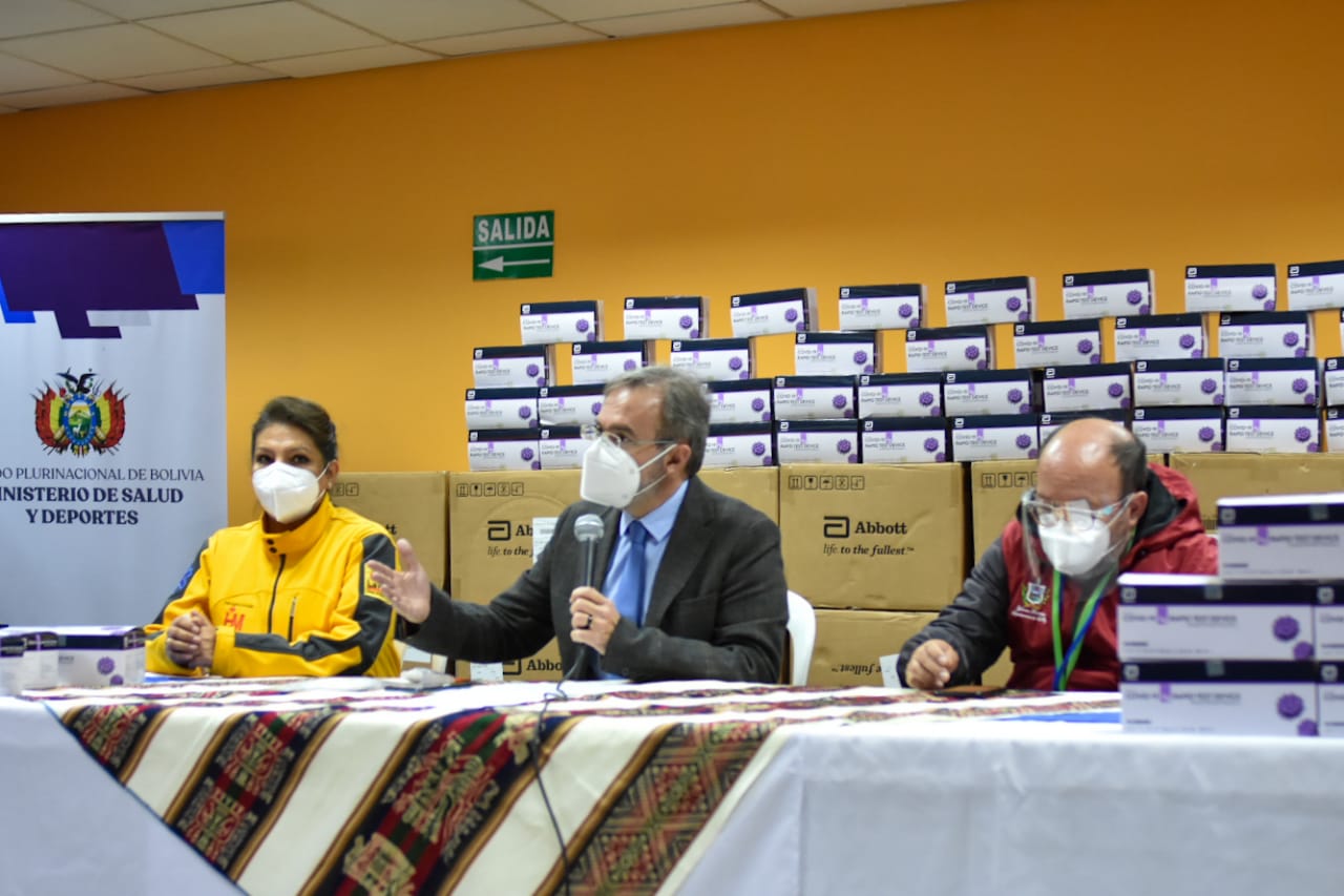 A la entrega de este primer lote para La Paz, se sumará un segundo cargamento consistente en 441.000 pruebas destinadas al departamento, informó el vocero presidencial, Jorge Richter, quien reiteró que el acceso a dichos insumos no tiene ningún costo para la población.