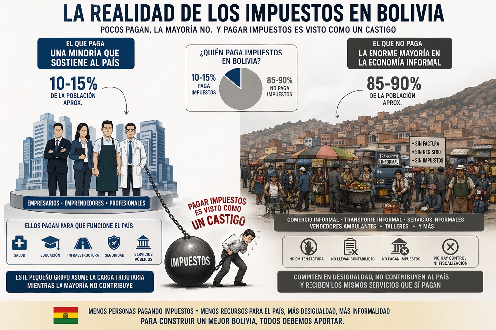 El problema no es solo de administración, sino de coherencia entre diseño normativo, capacidad institucional y realidad económica del país. Bolivia no necesita seguir exprimiendo a los mismos contribuyentes. Necesita un nuevo pacto tributario donde pagar impuestos tenga sentido y el Estado retribuya con servicios lo que exige con normas. La reforma tributaria no es solo un desafío técnico: es una condición indispensable para recuperar la equidad, la confianza y la viabilidad económica del país.