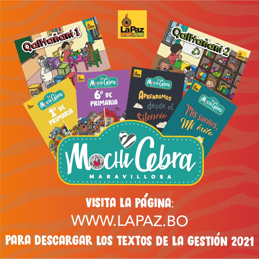 10 de abril (Urgente.bo).- Los textos de la ‘Mochicebra 2021’ están a disposición gratuita en la página web de la Alcaldía: www.lapaz.bo, informó la jefa de la Unidad de Gestión Educativa y Servicios Pedagógicos, Wara Vilaseca. Ayer fue el lanzamiento del material pedagógico.