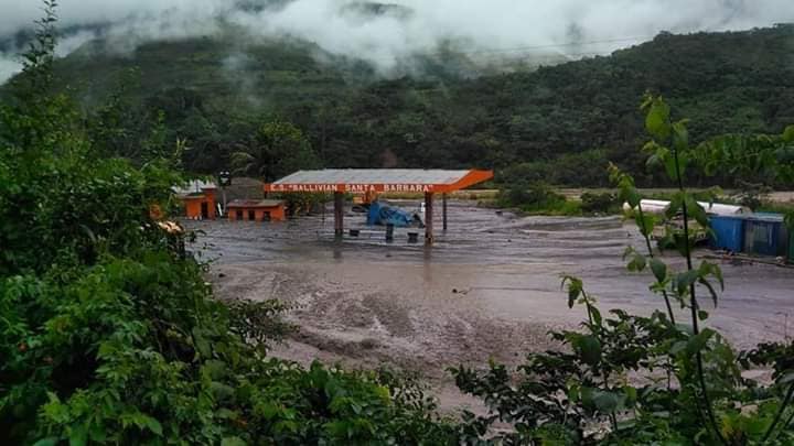 Reportes indican que hay una maquinaria en mal estado y no tendría combustible, también se informa que dicho surtidor no está vendiendo combustible debido a la inundación. Las lluvias persisten en el sector.