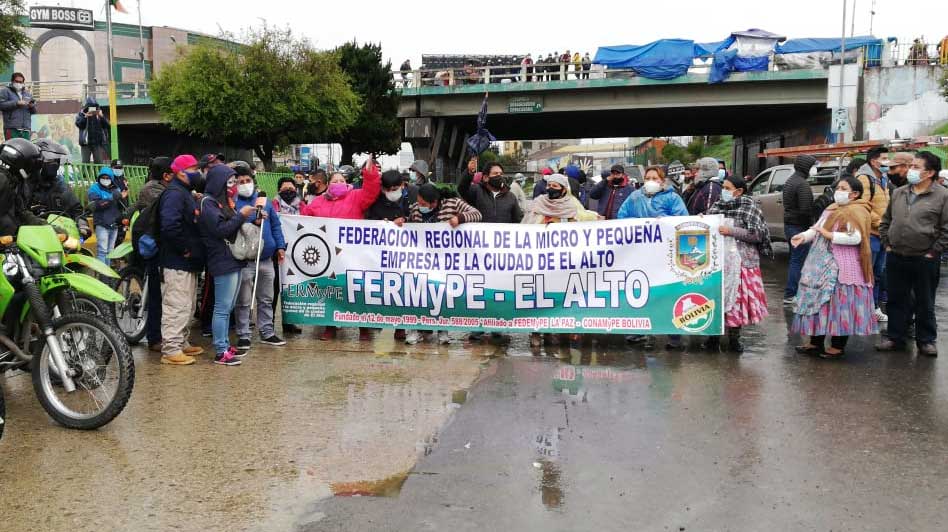 19 de enero (Urgente.bo-Erbol).- Los afiliados a la Federación Regional de la Micro y Pequeña Empresa (Fermype) de El Alto se sumaron al paro de los choferes e instalaron varios puntos de bloqueo, en demanda de que se declare un diferimiento automático de seis meses en créditos bancarios.