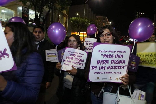 Durante esta la manifestación, la directora del Servicio Plurinacional de la Mujer, Tania Sánchez, dijo que en la presente jordana el Gabinete de Mujer aprobó planes de acciones específicas para frenar la violencia en contra de las féminas.