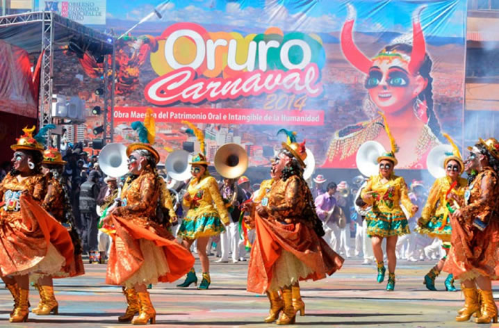 El Carnaval de Oruro es famoso a nivel mundial y fue declarado Obra Maestra del Patrimonio Oral e Intangible de la Humanidad por la UNESCO. Los Conjuntos Folklóricos recorreran las calles, vistiendo coloridos trajes en un despliegue de cultura, patrimonio y tradición.