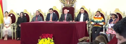 En el evento se encuentran los vocales del Tribunal Supremo Electoral (TSE) y al menos 400 invitados, entre ellos los familiares de Paz y Lara.