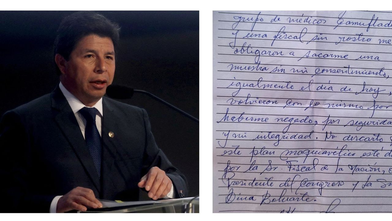 12 de diciembre (Infobae).- El expresidente Pedro Castillo tildó de “usurpadora” a Dina Boluarte y aseguró que está “secuestrado” en la sede de División Nacional de Operaciones Especiales (Dinoes), en Ate, donde se encuentra recluido desde el último miércoles 7 de diciembre tras el fallido autogolpe.