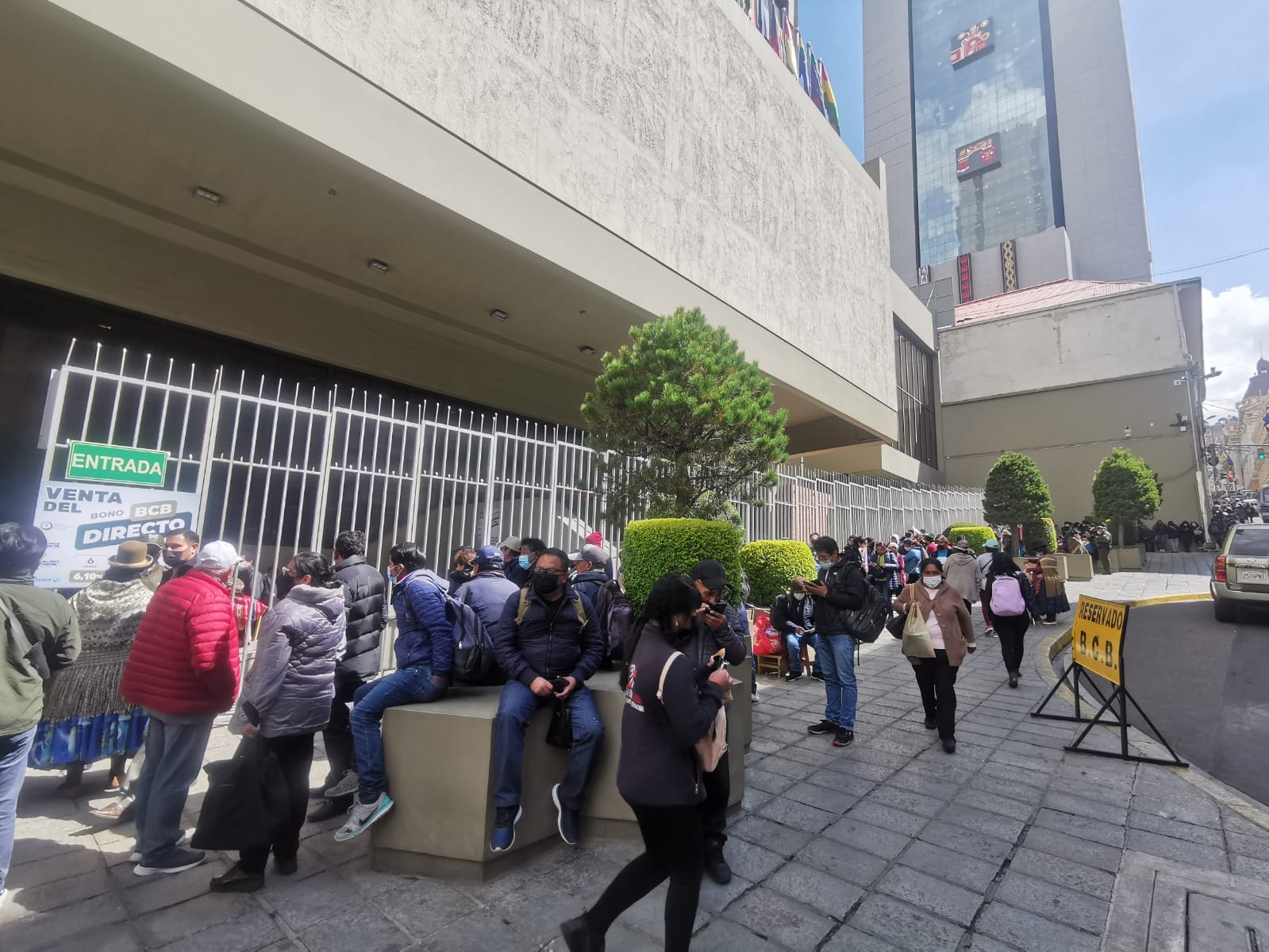 8 de marzo (Urgente.bo).- Desde que se habilitó el día lunes la venta de dólares en el Bolsín del Banco Central de Bolivia, las filas y las horas de espera son interminables. En un sondeo realizado por este medio se pudo verificar que personas que no pudieron ser atendidas ayer durmieron frente a las puertas del Ente Emisor esperando comprar dólares hoy.