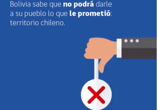 “Bolivia pidió que la Corte obligue a Chile a entregar su propio territorio para darle un acceso plenamente soberano al Océano Pacífico”, dice el spot publicado por la cuenta de la Cancillería en Twitter