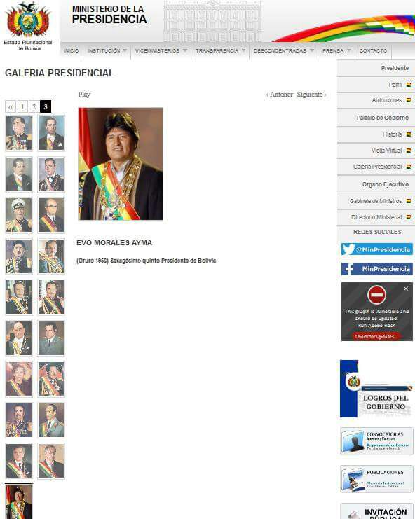 La Paz, 13 de marzo (Urgentebo).- En la página web del Ministerio de la Presidencia fueron eliminados de la galería de presidentes los ex mandatarios del país, Jorge Quiroga y Carlos Mesa. En la página saltan de la gestión de Gonzalo Sánchez de Lozada a la de Eduardo Rodríguez Veltzé.