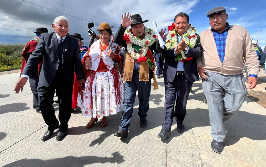 En la ocasión, Santos Quispe recordó la serie de obras y proyectos que se consolidan desde 2021, cuando asumió el cargo de Gobernador. En esa línea mencionó el distribuidor vial Oeste – La Paz, tramo 5, que tiene una inversión de Bs 25 millones. Luego, detalló la avenida Jacha Tupo, cuyas obras están en marcha y tiene un financiamiento mayor a Bs 50 millones.