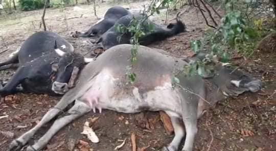 El propietario del ganado, Israel Saavedra, relató que un rayo cayó sobre un árbol donde presuntamente se hallaban los animales para cubrirse de la intensa lluvia. El estruendo fue tan fuerte que lo despertó y salió de su habitación para observar lo ocurrido.