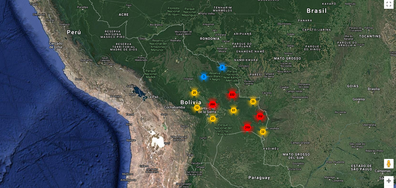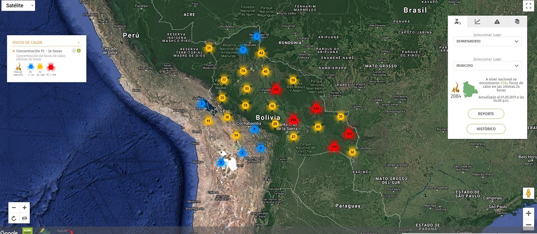 La Fundación se basa en información proporcionada por el Sistema de monitoreo y alerta temprana de riesgos de incendios forestales (SATRIFO), que ofrece información y herramientas dinámicas e interactivas, que permiten visualizar, consultar, analizar y descargar mapas y datos históricos y en tiempo casi real para diferentes regiones de Bolivia.