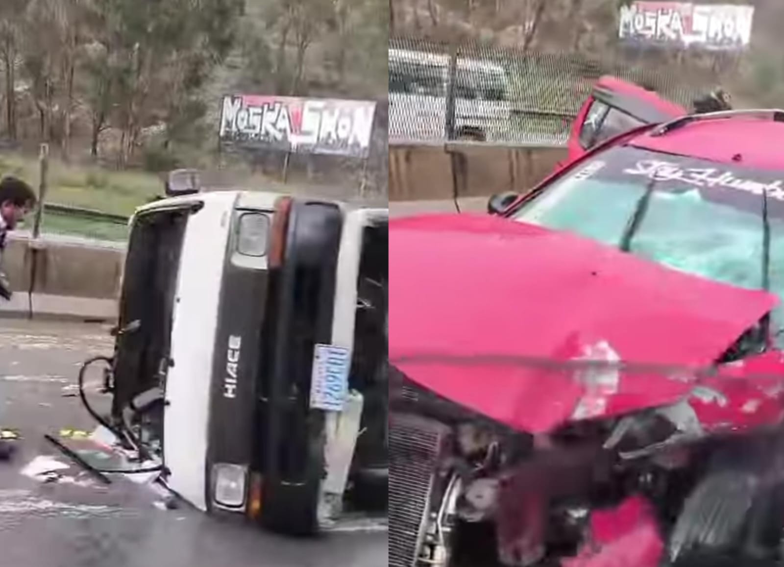 Se trata de dos vehículos que aparentemente colisionaron. Videos muestran un minibús volcado y con daños de consideración, al igual que un automóvil taxi.