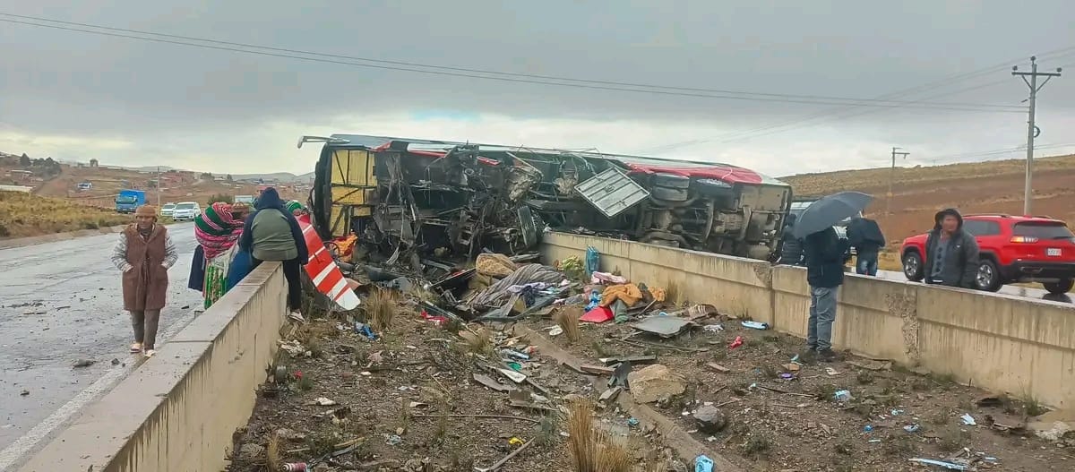 13 de noviembre (Urgente.bo).- Este jueves se reportó un accidente de tránsito en la carretera La Paz-Oruro, en la localidad de Achica Arriba. Un bus de servicio público terminó volcado fuera de la vía.