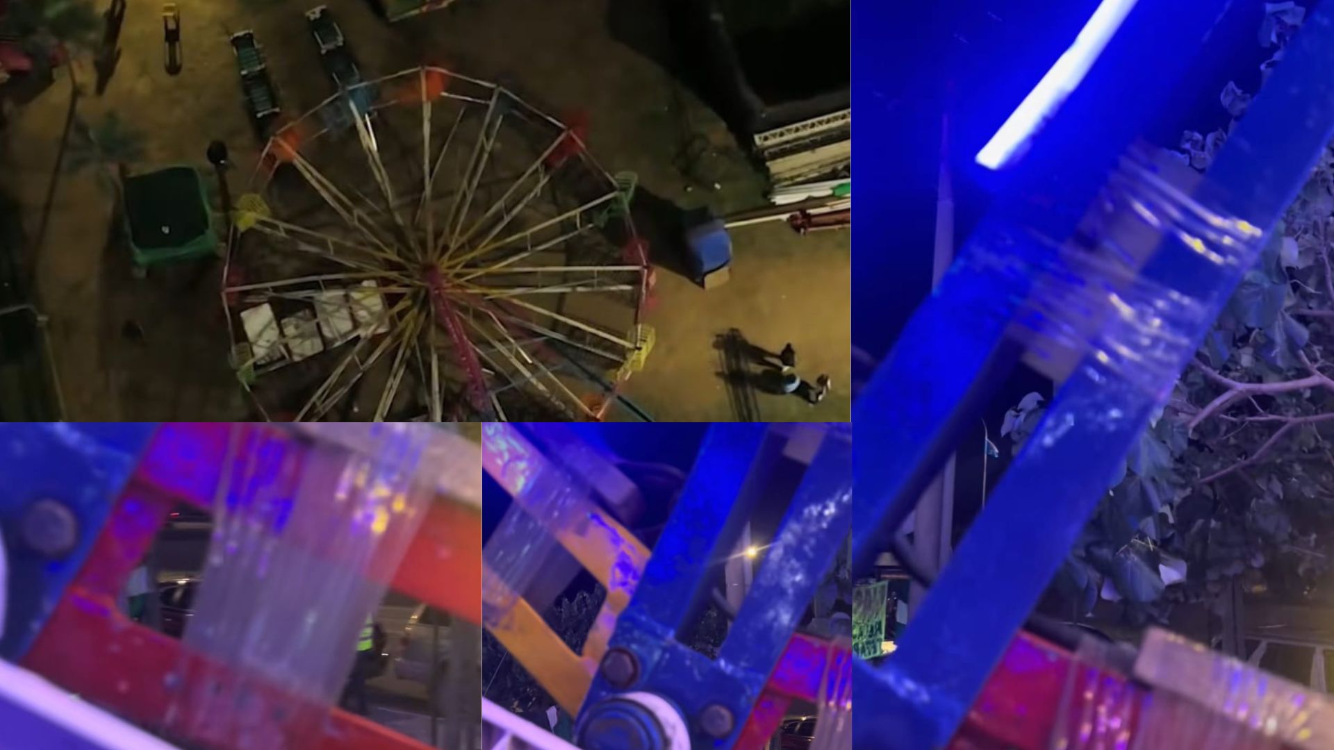 Las imágenes y videos que circulan en las redes sociales muestran que algunos juegos que operaban en las alasitas eran sostenidos con ladrillos y cinta.