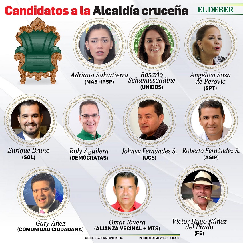 Carlos Guzmán, profesional en Ciencias Políticas, investigador, nos da algunas pautas: “Eso pasa justamente porque estamos en un cambio de paradigma y de representación política. La caída del MAS y de toda su esfera de influencia en Santa Cruz, ha hecho que los liderazgos políticos entren en ebullición y haya varias candidaturas que si bien salen de espacios sectoriales, pretenden arrogarse la representación de la colectividad. El mosaico de candidaturas también responde a una transformación del bloque político. Al caer el MAS en Bolivia y la muerte de Percy Fernández y el fracaso de la gestión de Johnny Fernández en la ciudad, se ha dejado al descubierto la falta de liderazgo institucional de la ciudad de Santa Cruz. Ese vacío se pretende llenar en estas elecciones”.