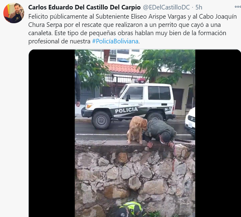 Esta acción fue aplaudida en RRSS. En el transcurso de la tarde el ministro de Gobierno, Eduardo Castillo, destacó la labor del subteniente Eliseo Arispe Vargas y del cabo Joaquín Chura Serpa en su cuenta de Twitter.