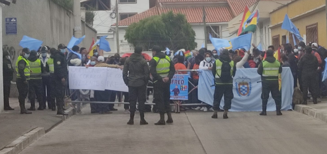 7 de octubre (Urgente.bo).- Al menos unas 100 personas instalaron una vigilia en puertas del Tribunal Departamental de Justicia (TDJ) en Sucre en apoyo al alcalde de Manfred Reyes Villa, alcalde de Cochabamba.